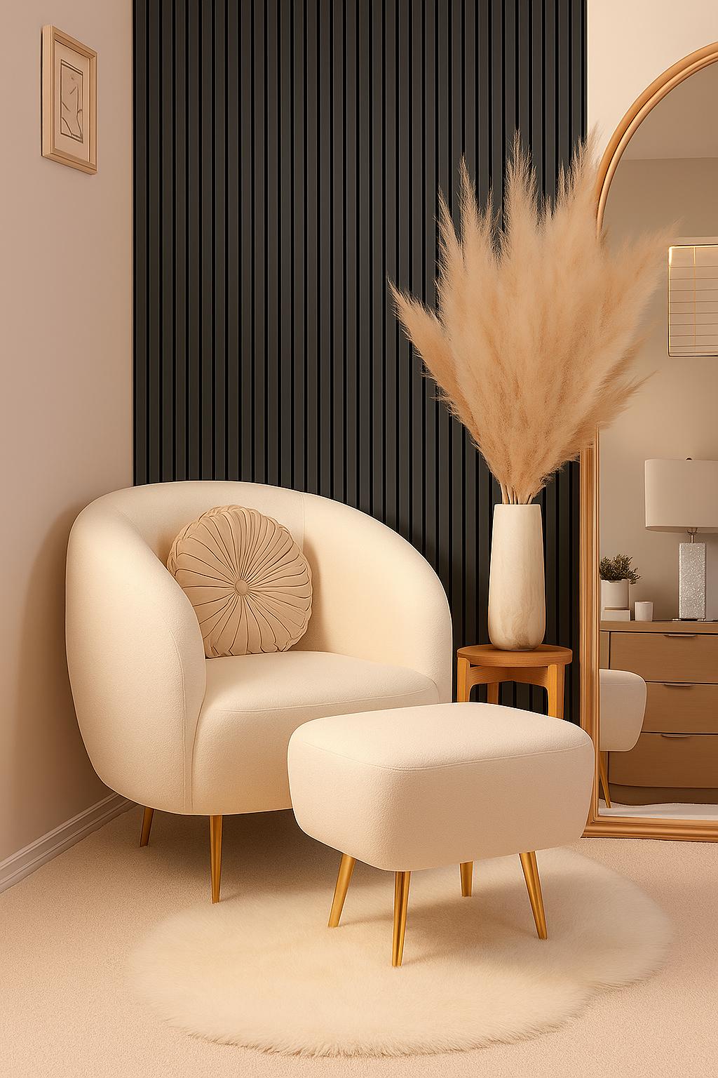Tufted Wingback Chair - Plush Teddy Fleece, Dark Grey, 120kg Capacity