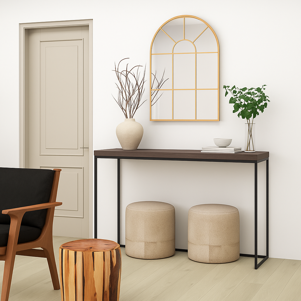 Black & Gold Arched Mirror - 180x105cm, Full-Length Metal Frame