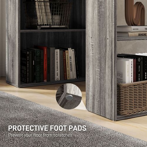 120cm Computer Desk with Bookshelf - 6-Tier Workstation, Grey Wood-Effect