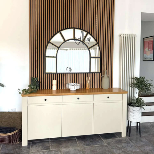 Crafted with a black and gold metal frame featuring seamless welds, this mirror exudes modern elegance. The 4mm reinforced glass with explosion-proof backing ensures durability and safety. Comes ready to hang or lean, ideal for living rooms, entryways, or bedrooms.